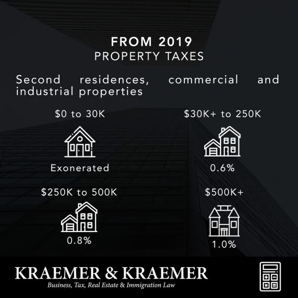 The former rule of tax exemption for properties with values up to USD 30,000 is still in place, for properties not declared as the main live house or tributary family patrimony.